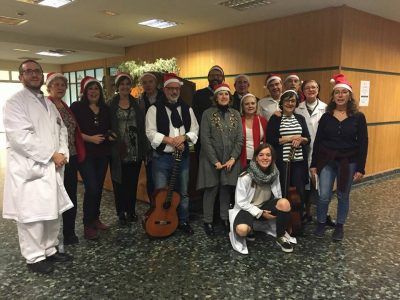 Otro momento espectacular es celebrar con ellos la Navidad. Antes de las Fiestas vamos un día para cantarles Villancicos, y ese día es el más mágico, porque cantamos primero en la Capilla, pero luego hacemos un recorrido por varias unidades de hospitalización, en las que encontramos a los que no pueden o no suelen bajar, pero que siempre se alegran –y emocionan– con nuestra visita.