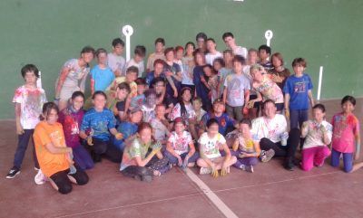 Fuera, en la cancha del frontón bajo techado, nos juntamos todos, nos dividimos en dos grupos (éramos unos cuantos) formados por padres, madres, niños, niñas, abuelos, abuelas, tíos y API’s.