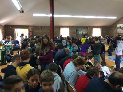 Tanto los API’s como Giancarlo y los niños y niñas estaban un poco cansadillos. Desde el viernes habían estado haciendo distintas actividades tales como ver una peli que invitaba a reflexionar sobre la familia, reflexiones acerca de los migrantes y los problemas del mundo, una yincana guarra, durante la noche del sábado al domingo, la estupefacta y horripilante noche del terror y para terminar el domingo faltaban los juegos con el resto de los integrantes de Génesis y las familias, la súper misa presidida por Giancarlo MSpS y como broche final la comida compartida entre todos los asistentes.