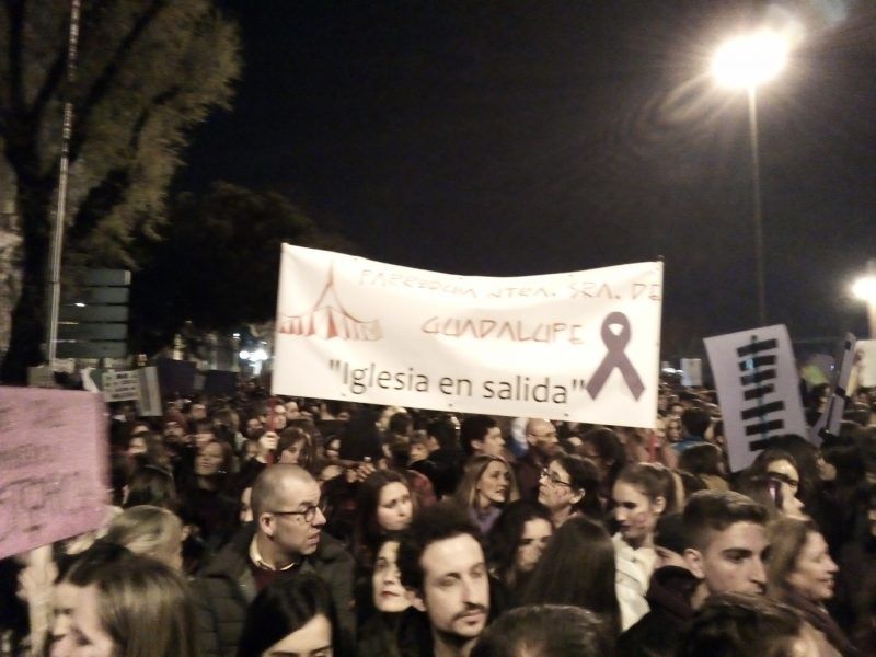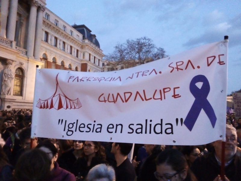 El pasado 8 de marzo, la parroquia de Guadalupe se hizo visible en la manifestación convocada por el Día Internacional de la Mujer. Antes, muchos de nosotros nos habíamos manifestado por esta u otras causas solos, con amigos y familiares o incluso con gente de la parroquia, pero por primera vez Guadalupe nos animaba a ir juntos, como cristianos comprometidos por un mundo más justo.