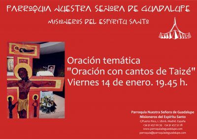 El próximo viernes día 14 de enero, tendremos una nueva Oración Temática, que estará animada por el grupo Taizeando, consistente en una “Oración con cantos de Taizé”.