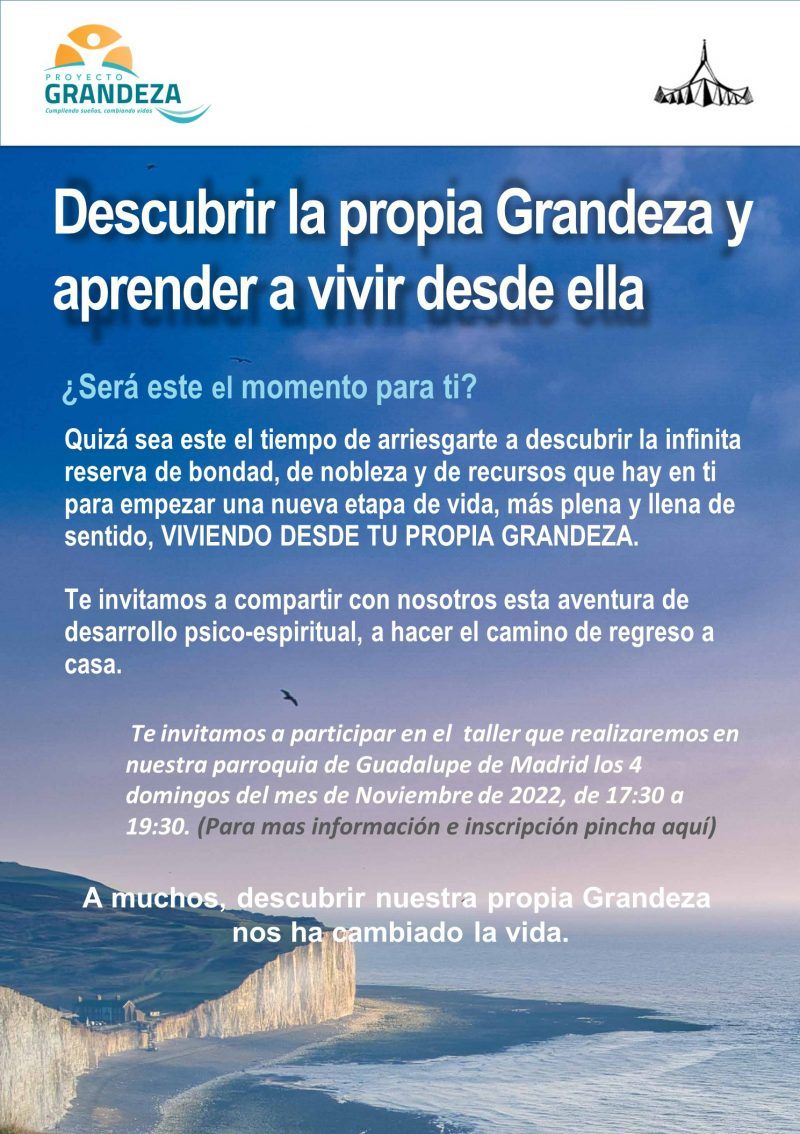 Os invitamos a un taller sobre la “Grandeza” que consiste en un espacio interactivo que busca favorecer el propio desarrollo psico-espiritual, para encontrar caminos y descubrir herramientas que permitan avanzar hacia la propia plenitud.